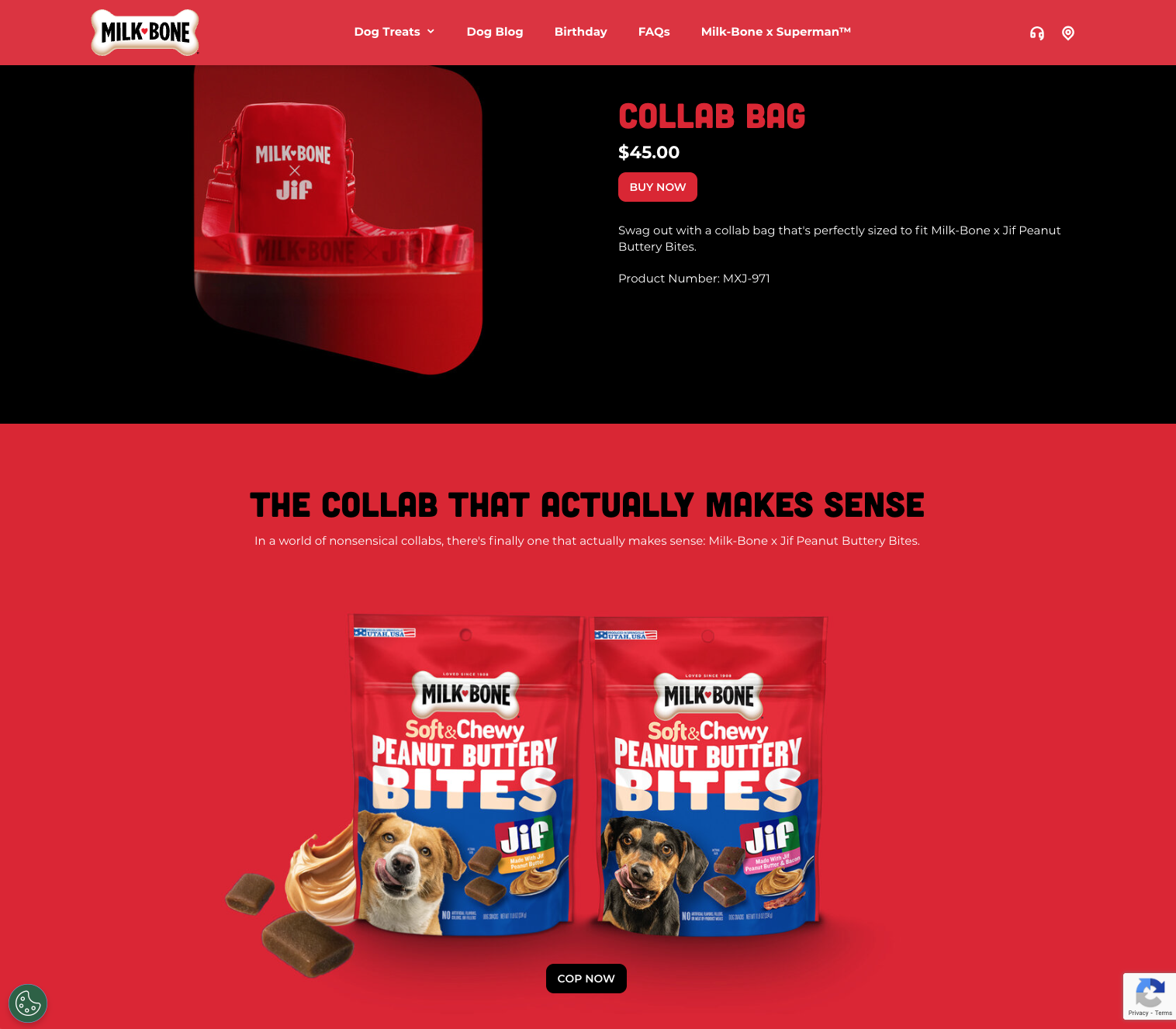 To launch their latest treat collab with Jif Peanut Butter, Milk-Bone poked fun at brand collab drop culture by dropping an entire Milk-Bone x Jif Collab Collection at a pop-up event in New York City… (complete with a Supreme-adjacent line wrapped around the block.)